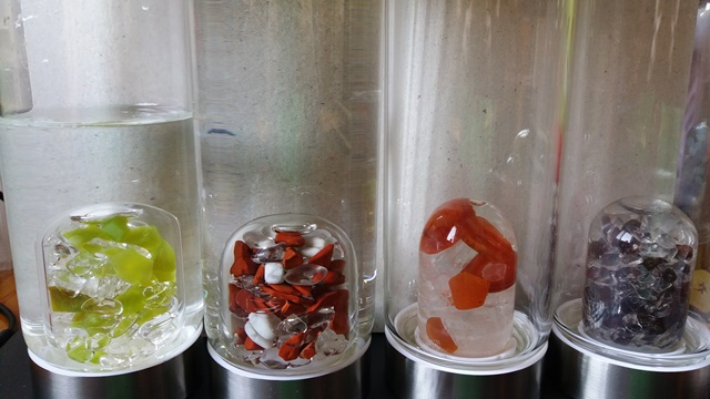 Now coming to crystal water. I drink water daily treated via crystals and it is called VitaJuwel. I have several collection of the bottles and also the vials. Even my pet cats are drinking the gemstone water, for their health and wellbeing.
