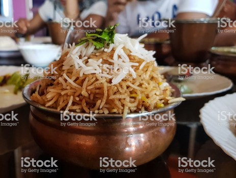 Previous Image Next Image Handi Biryani In a local indian restaurant garnished with coriander Handi Biryani In a local indian restaurant garnished with coriander